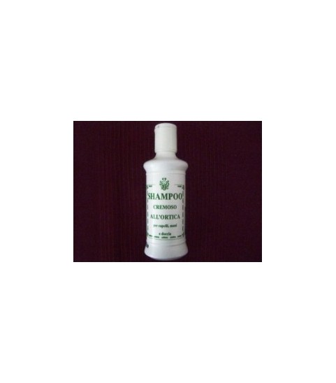 Shampoo cremoso all'ortica. Deterge delicatamente i capelli ed è indicato anche per mani e doccia.